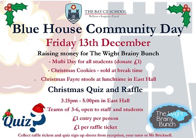 We are delighted to have the support of Sandown Bay C of E School for their forthcoming Blue House Community Day on the 13th December.