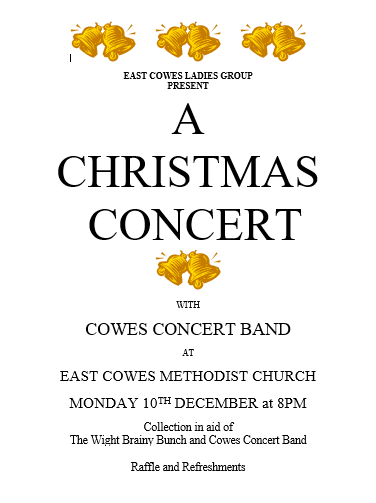 For a wonderful evening of festive entertainment, please join the Cowes Concert Band for their Christmas Concert at East Cowes Methodist Church.