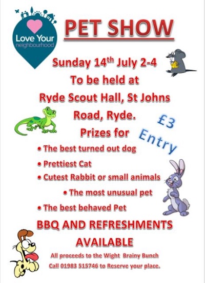 Continuing with their support through 2019, Ryde Co-op Funeralcare are holding a Family Pet Show at the Scout Hut, St Johns Hill Ryde on Sunday 14th July from 2-4pm.