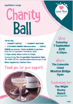 We are thrilled this year to be the chosen charity of Ryde Co-op Funeralcare and to be invited to join them for their 2nd Black Tie Ball as part of their charity partnership initiative.